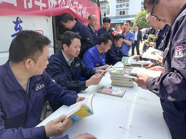 2018年4月28日上午,在“五一”勞動節(jié)來臨之際,為滿足企業(yè)員工朋友的閱讀需求,積極引導員工多讀書、讀好書,用****的書刊激勵員工自立、自強,營造良好的讀書氛圍,縣圖書館到我公司開展流動圖書車進企業(yè)活動,本次活動的主題是“書箱送春風,溫情送員工”,圖書館準備了大量的技術業(yè)務書籍,公司一線員工來到流動圖書車旁,爭相查閱技術資料,閱讀相關書籍,豐富了員工的精神生活。